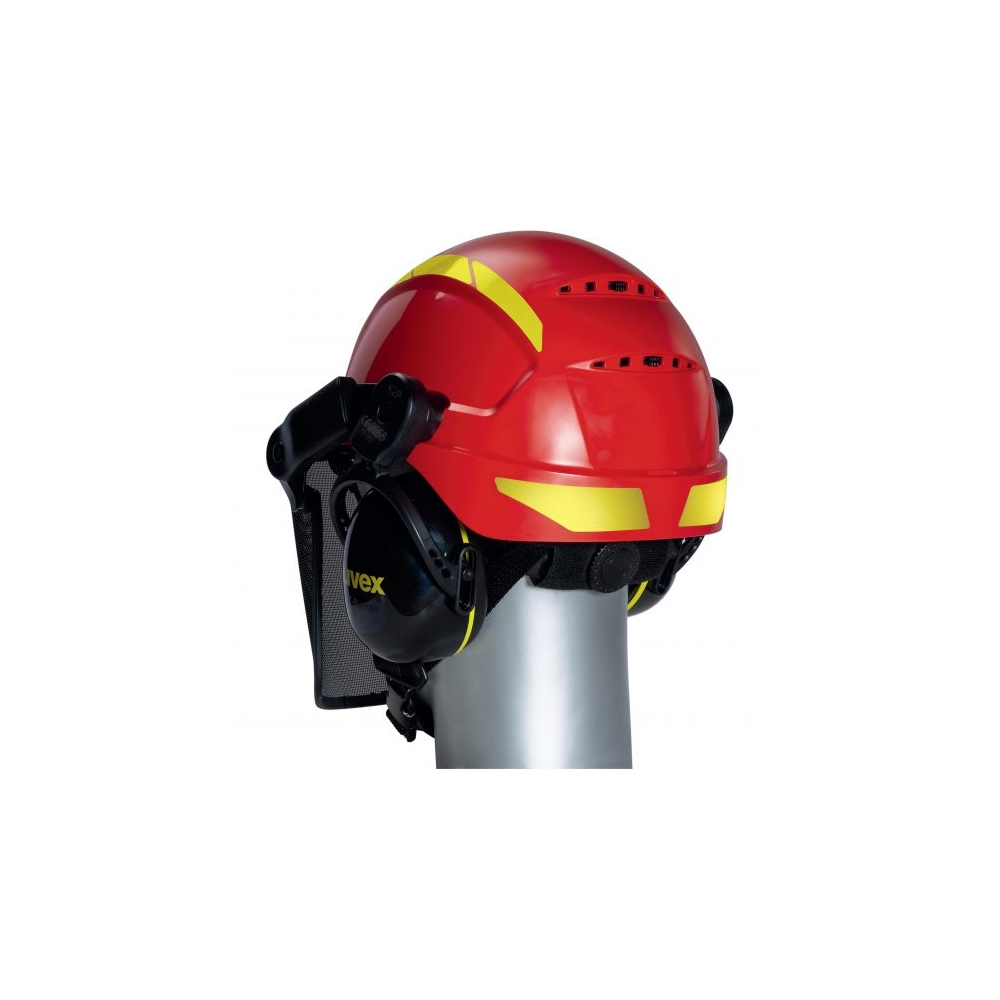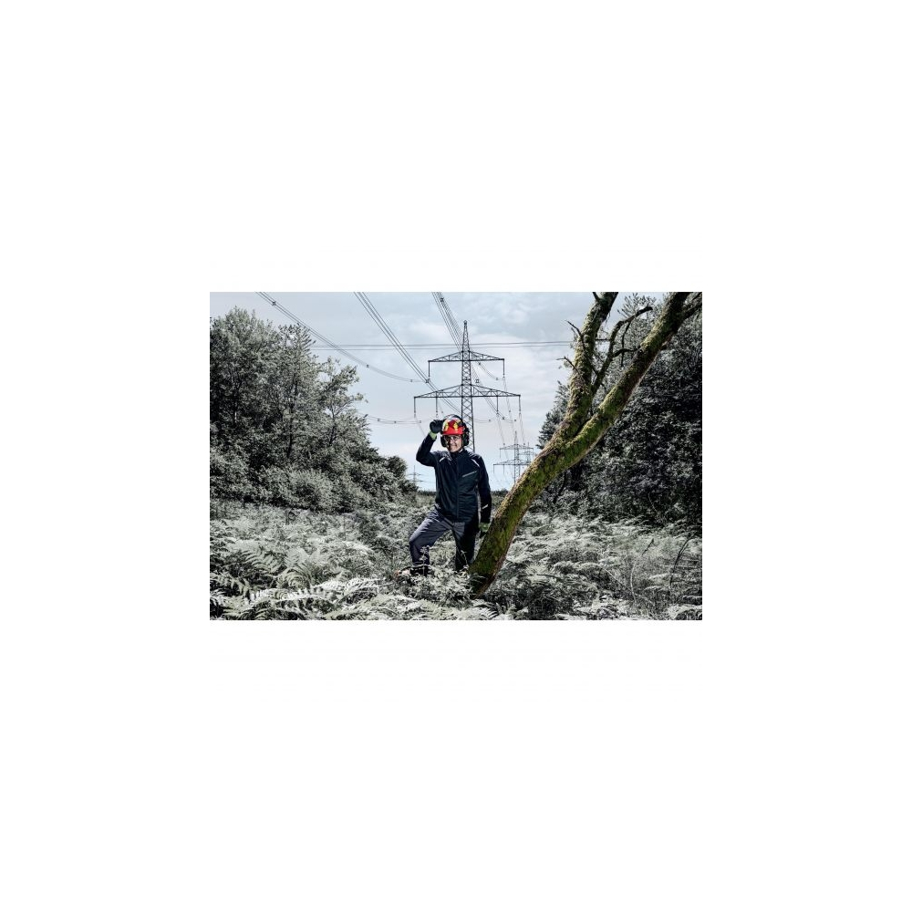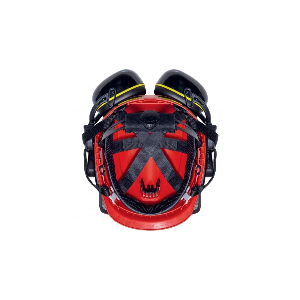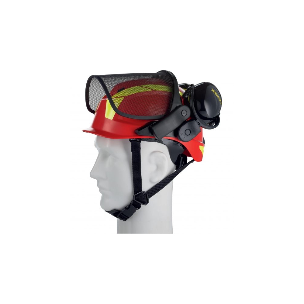 Kit completo per il lavoro forestale, composto da elmetto, visiera a rete, cuffie auricolari e fischietto